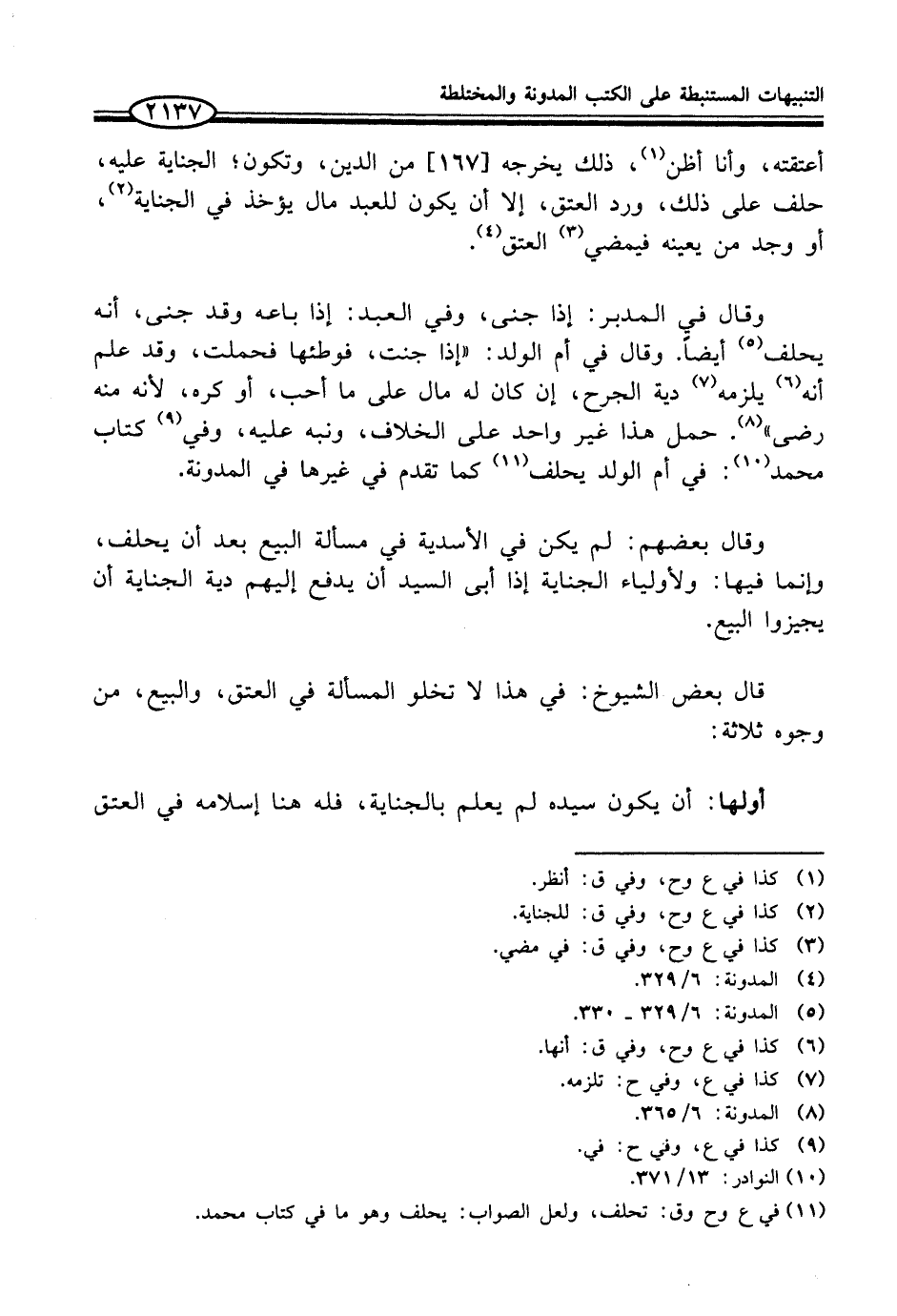 وقال في المدبر: إذا جنى، وفي العبد: إذا باعه وقد جنى، أنه يحلف (¬5) أيضاً. وقال في أم الولد: "إذا جنت، فوطئها فحملت، وقد علم أنه (¬6) يلزمه (¬7) دية الجرح، إن كان له مال على ما أحب، أو كره، لأنه منه رضى" (¬8). حمل هذا غير واحد على الخلاف، ونبه عليه، وفي (¬9) كتاب محمد (¬10): في أم الولد يحلف (¬11) كما تقدم في غيرها في المدونة.
