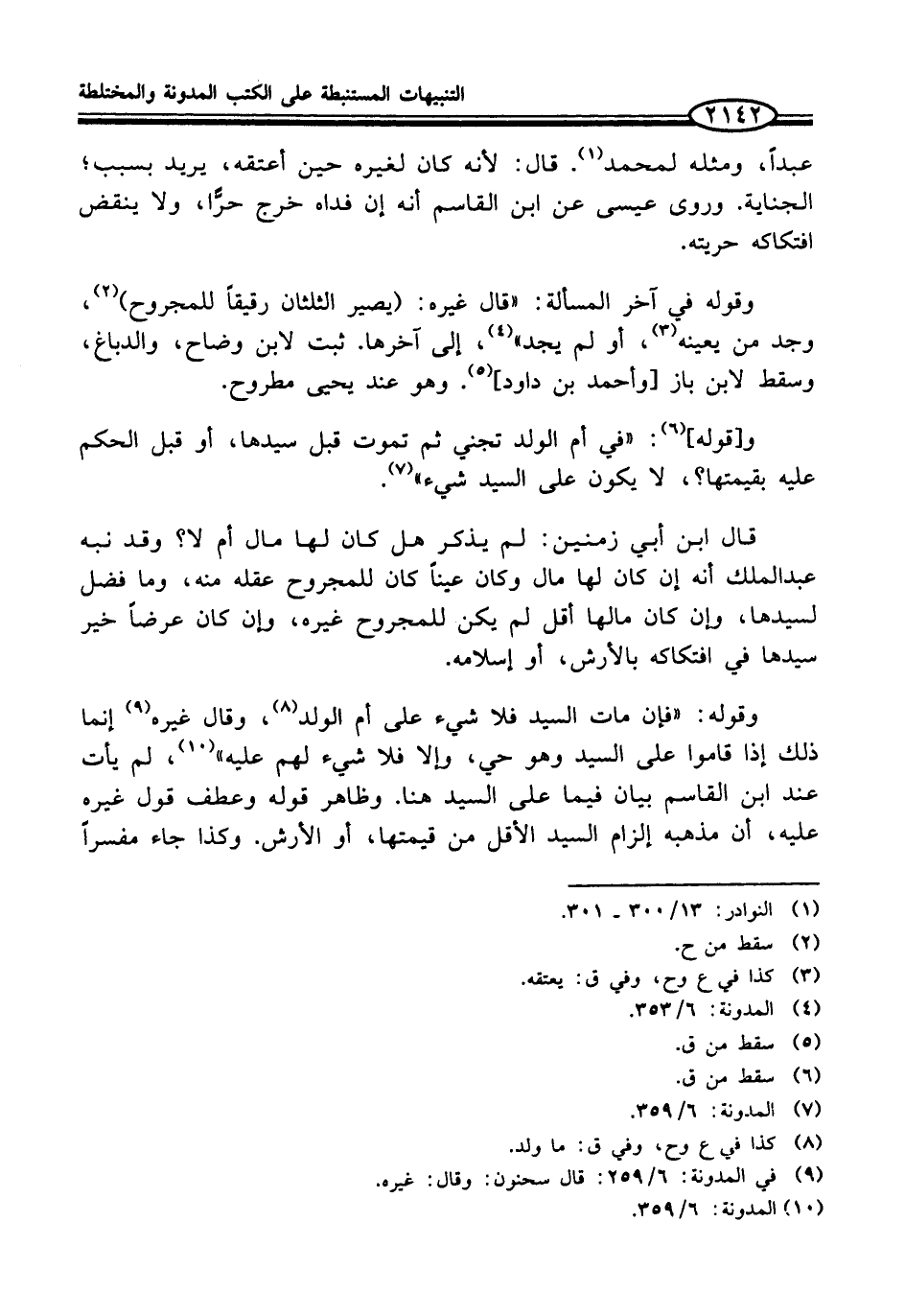 (¬9) في المدونة: 6/ 259: قال سحنون: وقال: غيره.
