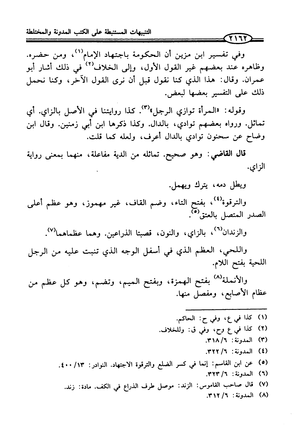 قال القاضي: وهو صحيح. تماثله من الدية مفاعلة، منهما بمعنى رواية الزاي.