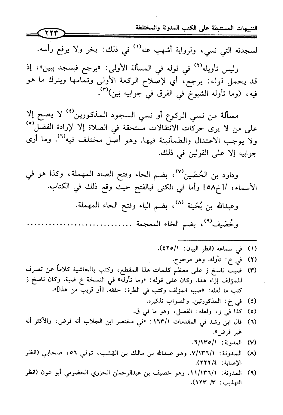 (¬9) المدونة: 1/ 136/ 11. وهو خصيف بن عبد الرحمن الجزري الحضرمي أبو عون (انظر التهذيب: 3/ 123).