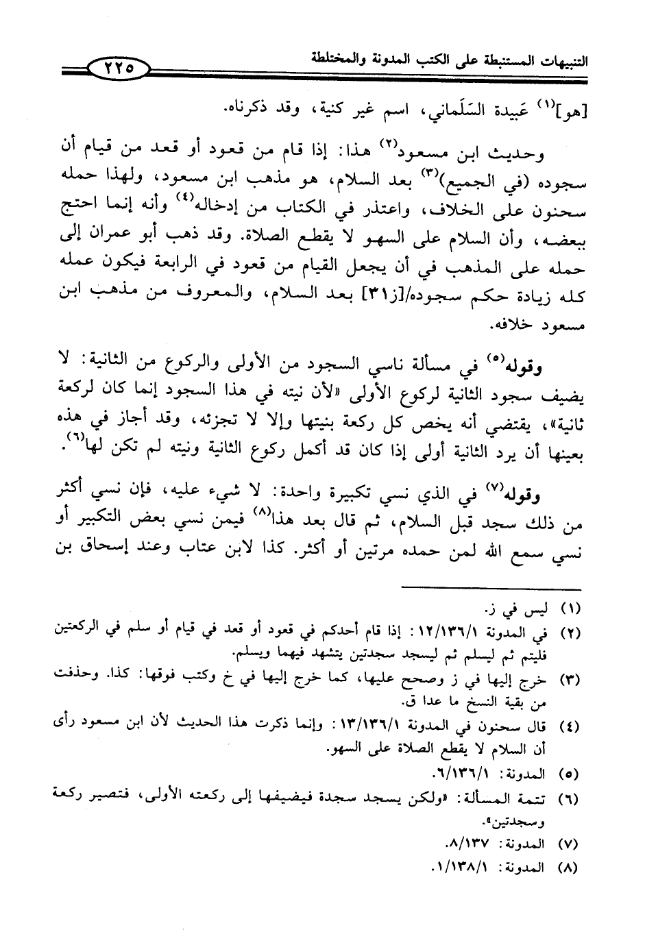 (¬4) قال سحنون في المدونة 1/ 136/ 13: وإنما ذكرت هذا الحديث لأن ابن مسعود رأى أن السلام لا يقطع الصلاة على السهو.