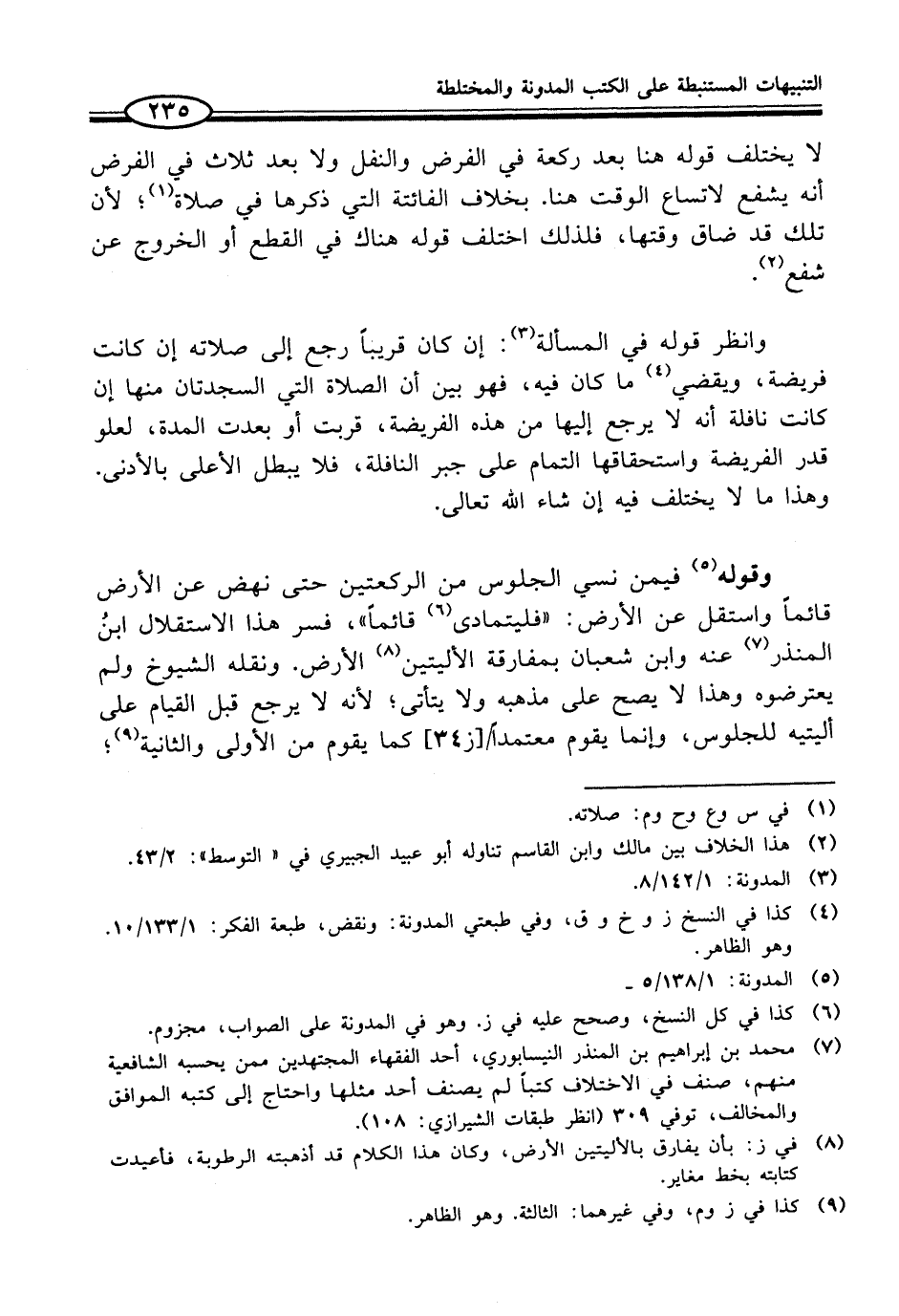 (¬7) محمَّد بن إبراهيم بن المنذر النيسابوري، أحد الفقهاء المجتهدين ممن يحسبه الشافعية منهم، صنف في الاختلاف كتباً لم يصنف أحد مثلها واحتاج إلى كتبه الموافق والمخالف، توفي 309 (انظر طبقات الشيرازي: 108).