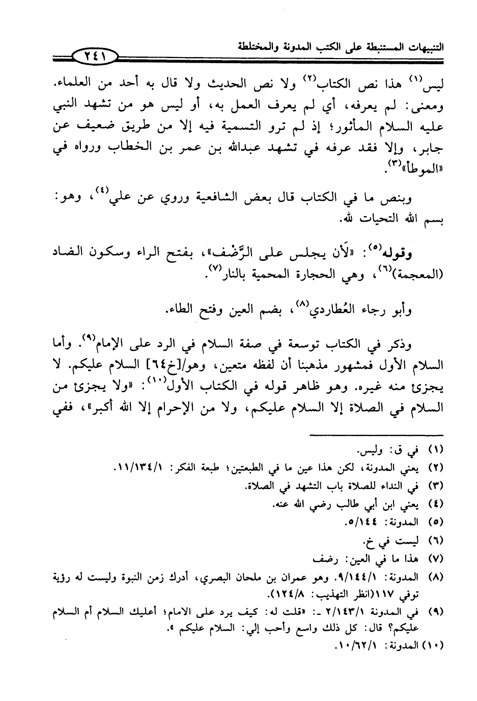 (¬9) في المدونة 1/ 143/ 2 - : "قلت له: كيف يرد على الإمام؛ أعليك السلام أم السلام عليكم؟ قال: كل ذلك واسع وأحب إلي: السلام عليكم".