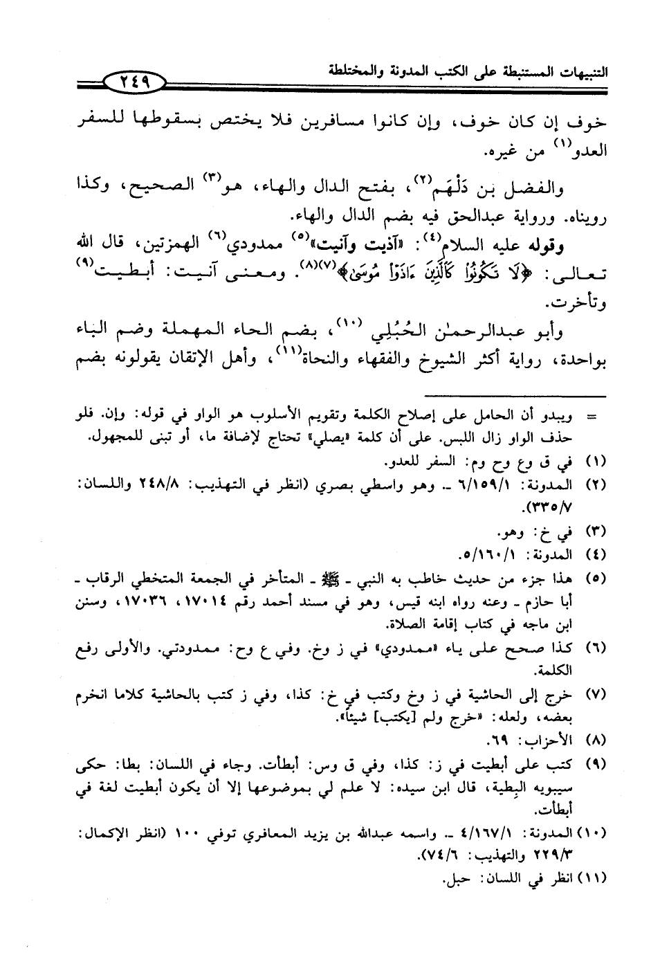 وأبو عبد الرحمن الحُبُلِي (¬10)، بضم الحاء المهملة وضم الباء بواحدة، رواية أكثر الشيوخ والفقهاء والنحاة (¬11)، وأهل الإتقان يقولونه بضم