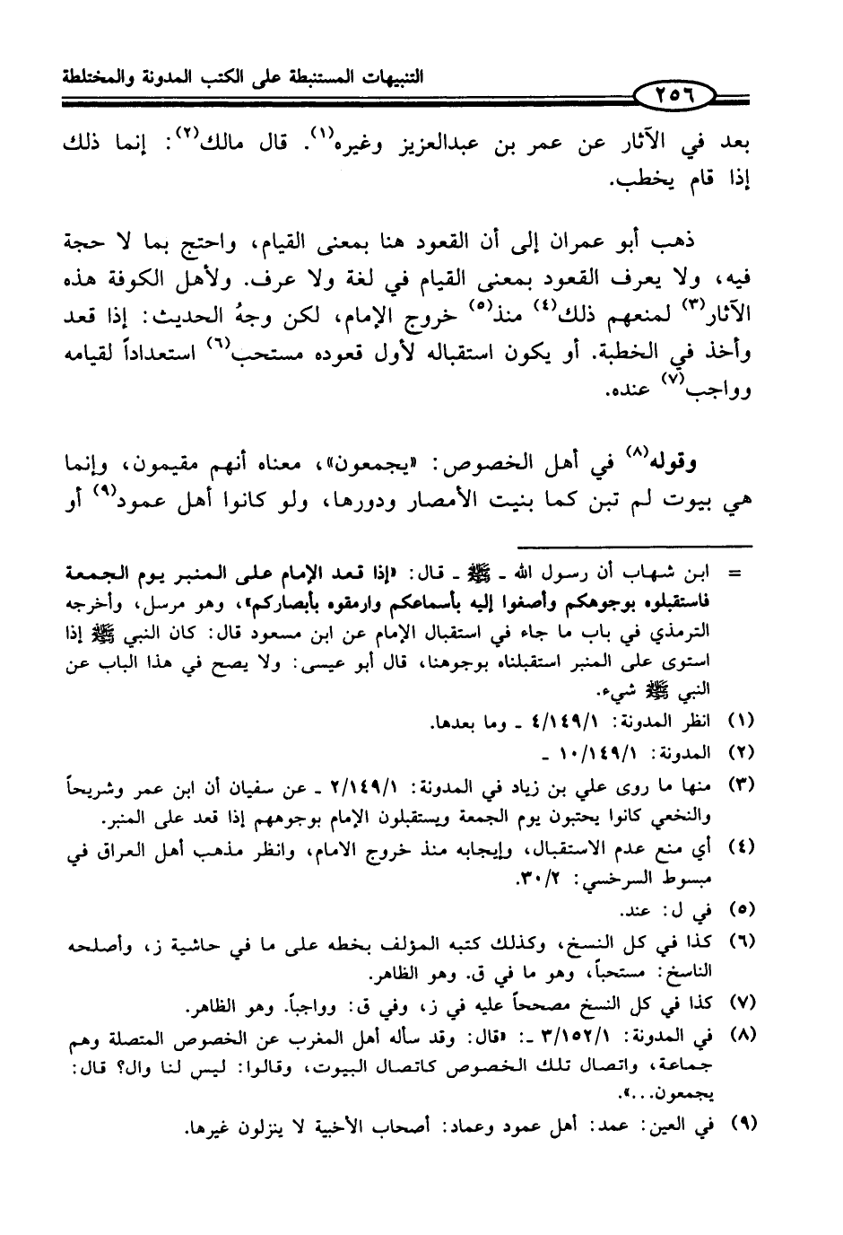 (¬4) أي منع عدم الاستقبال، وإيجابه منذ خروج الإمام، وانظر مذهب أهل العراق في مبسوط السرخسي: 2/ 30.