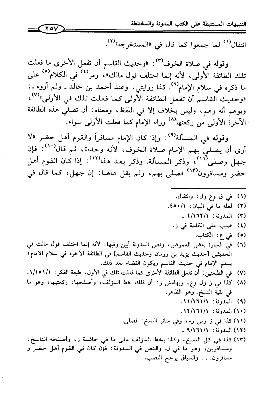 (¬6) في العبارة بعض الغموض، ونص المدونة أبين وفيها: لأنه إنما اختلف قول مالك في الحديثين [حديث يزيد بن رومان وحديث القاسم] في الطائفة الآخرة في سلام الإمام؛ يسلم الإِمام في حديث القاسم ويكون القضاء بعد ذلك.