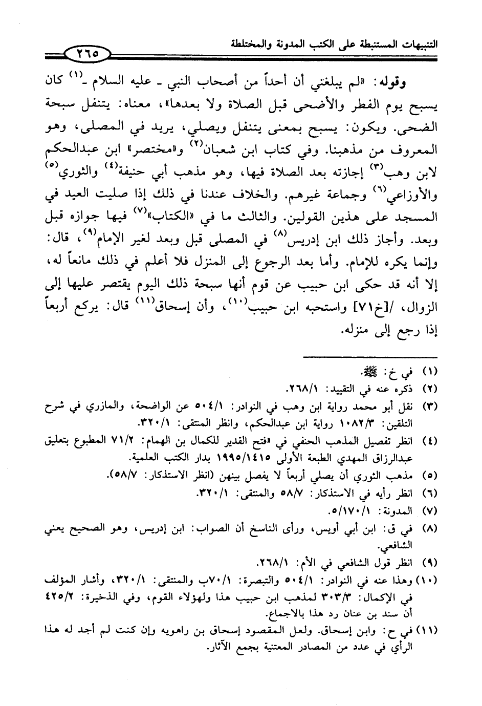 (¬10) وهذا عنه في النوادر: 1/ 504 والتبصرة: 1/ 70 ب والمنتقى: 1/ 320، وأشار المؤلف في الإكمال: 3/ 303 لمذهب ابن حبيب هذا ولهؤلاء القوم، وفي الذخيرة: 2/ 425 أن سند بن عنان رد هذا بالإجماع.