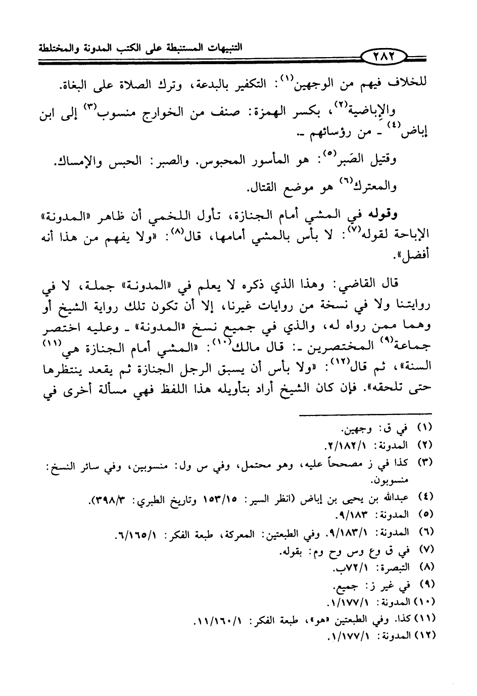 (¬6) المدونة: 1/ 183/ 9. وفي الطبعتين: المعركة، طبعة الفكر: 1/ 165/ 6.