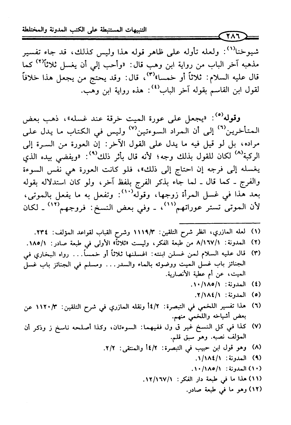 (¬6) هذا تفسير اللخمي في التبصرة: 2/ 4 أونقله المازري في شرح التلقين: 3/ 1120 عن بعض أشياخه واللخمي منهم.