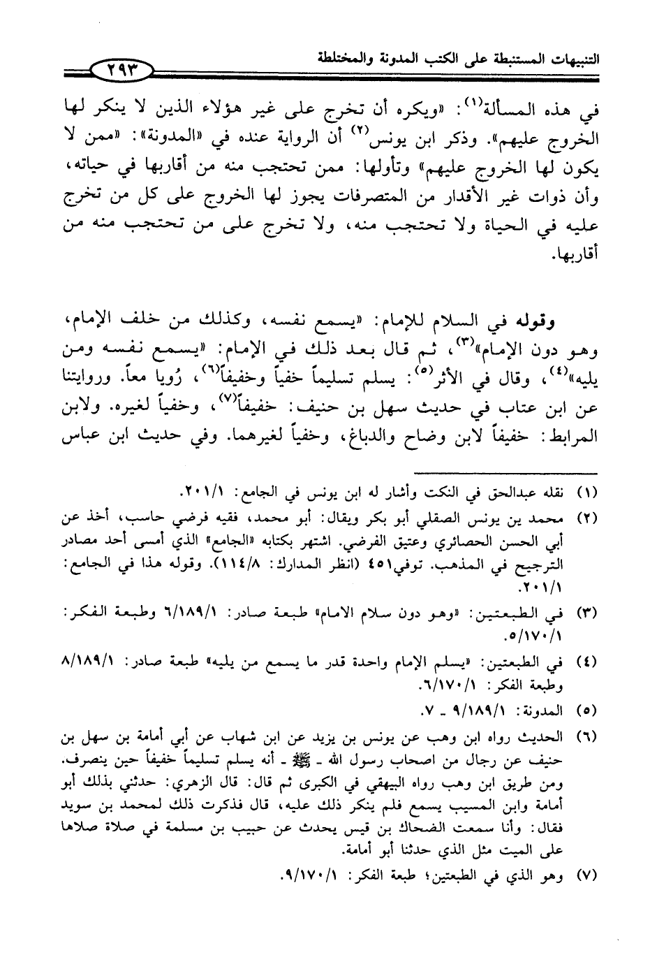(¬2) محمَّد بن يونس الصقلي أبو بكر ويقال: أبو محمَّد، فقيه فرضي حاسب، أخذ عن أبي الحسن الحصائري وعتيق الفرضي. اشتهر بكتابه "الجامع" الذي أمسى أحد مصادر الترجيح في المذهب. توفي 451 (انظر المدارك: 8/ 114). وقوله هذا في الجامع: 1/ 201.