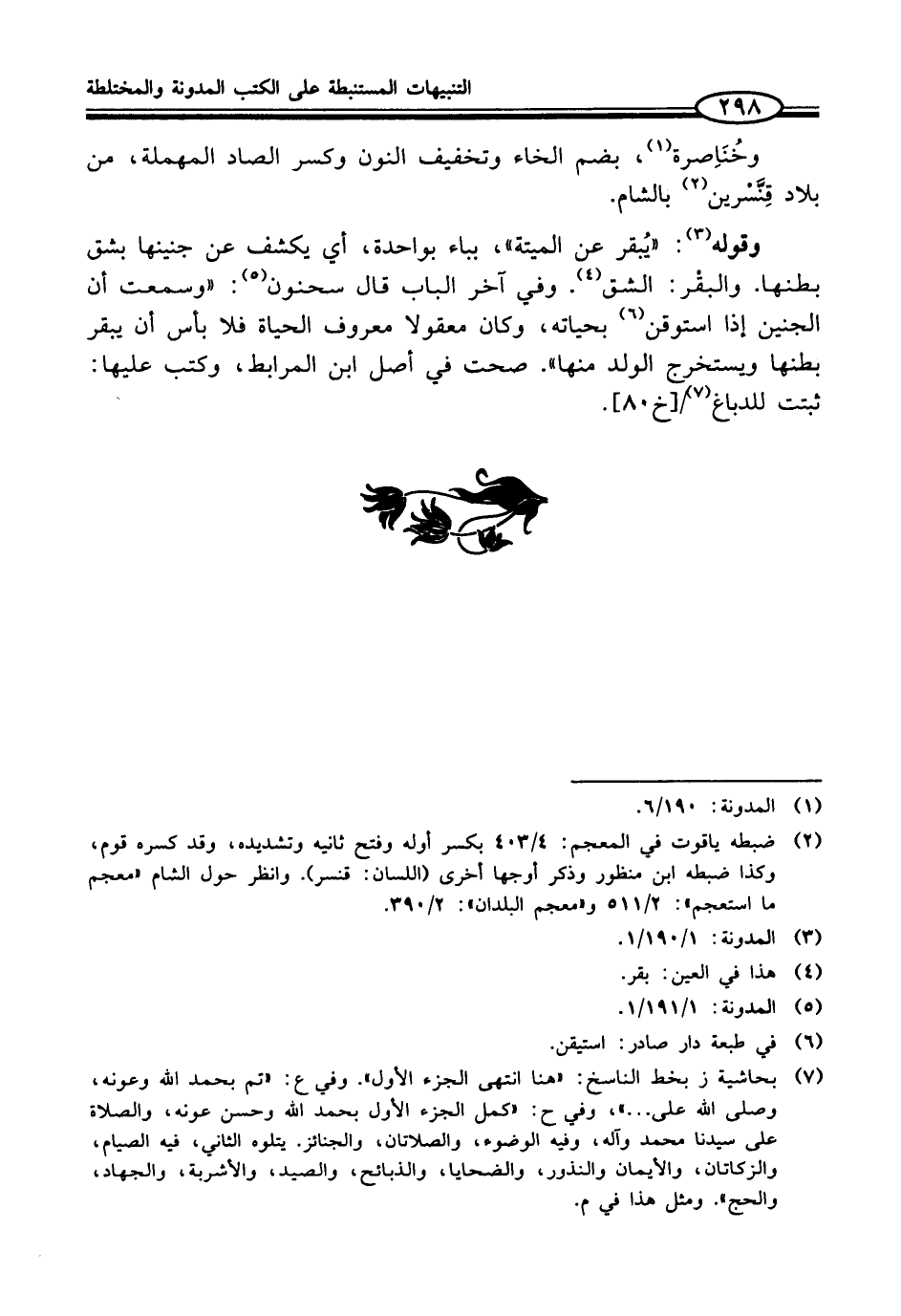 (¬7) بحاشية ز بخط الناسخ: "هنا انتهى الجزء الأول". وفي ع: "تم بحمد الله وعونه، وصلى الله على ... "، وفي ح: "كمل الجزء الأول بحمد الله وحسن عونه، والصلاة على سيدنا محمَّد وآله، وفيه الوضوء، والصلاتان، والجنائز. يتلوه الثاني، فيه الصيام، والزكاتان، والأيمان والنذور، والضحايا، والذبائح، والصيد، والأشربة، والجهاد، والحج". ومثل هذا في م.