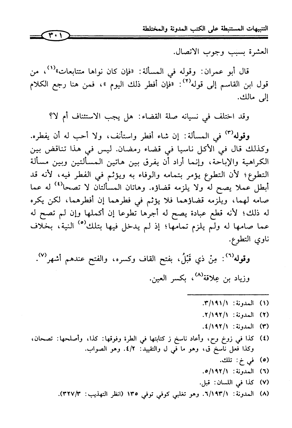 (¬8) المدونة: 1/ 193/ 6. وهو تغلبي كوفي توفي 135 (انظر التهذيب: 3/ 327).