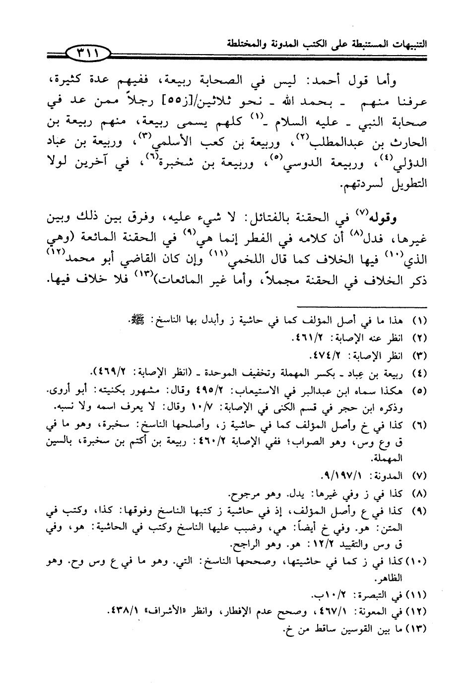 وأما قول أحمد: ليس في الصحابة ربيعة، ففيهم عدة كثيرة، عرفنا منهم - بحمد الله - نحو ثلاثين/ [ز 55] رجلاً ممن عد في صحابة النبي - عليه السلام - (¬1) كلهم يسمى ربيعة، منهم ربيعة بن الحارث بن عبد المطلب (¬2)، وربيعة بن كعب الأسلمي (¬3)، وربيعة بن عباد الدؤلي (¬4)، وربيعة الدوسي (¬5)، وربيعة بن شخبرة (¬6)، في آخرين لولا التطويل لسردتهم.