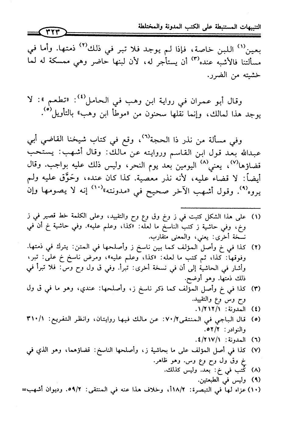 (¬10) عزاه لها في التبصرة: 2/ 18 أ، وخلاف هذا عنه في المنتقى: 2/ 59. وديوان أشهب =