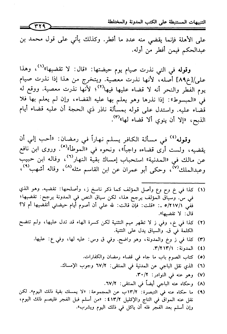 (¬6) الذي نقل الباجي عن المدنية في المنتقى: 2/ 67 وجوب الإمساك.