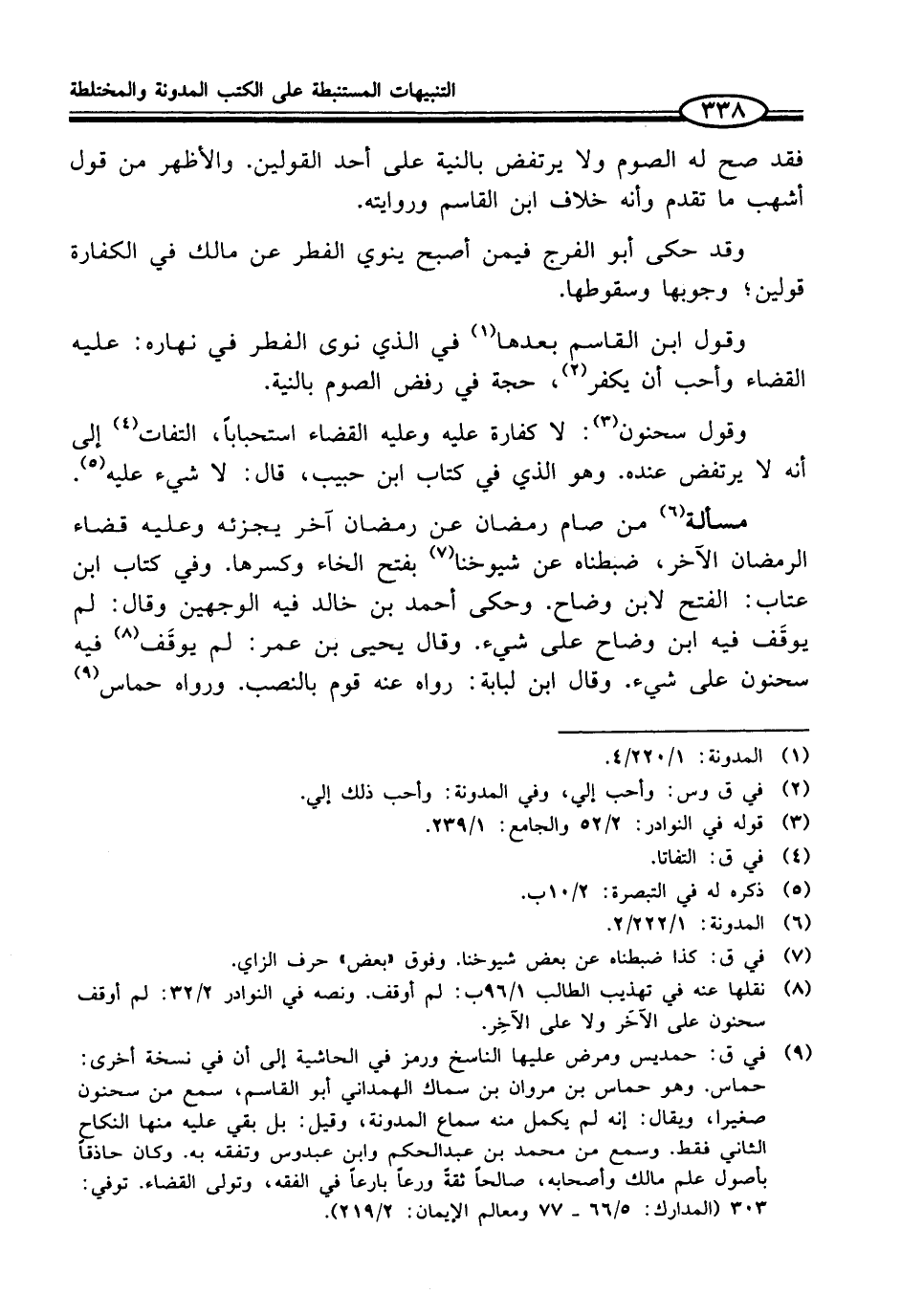 (¬3) قوله في النوادر: 2/ 52 والجامع: 1/ 239.