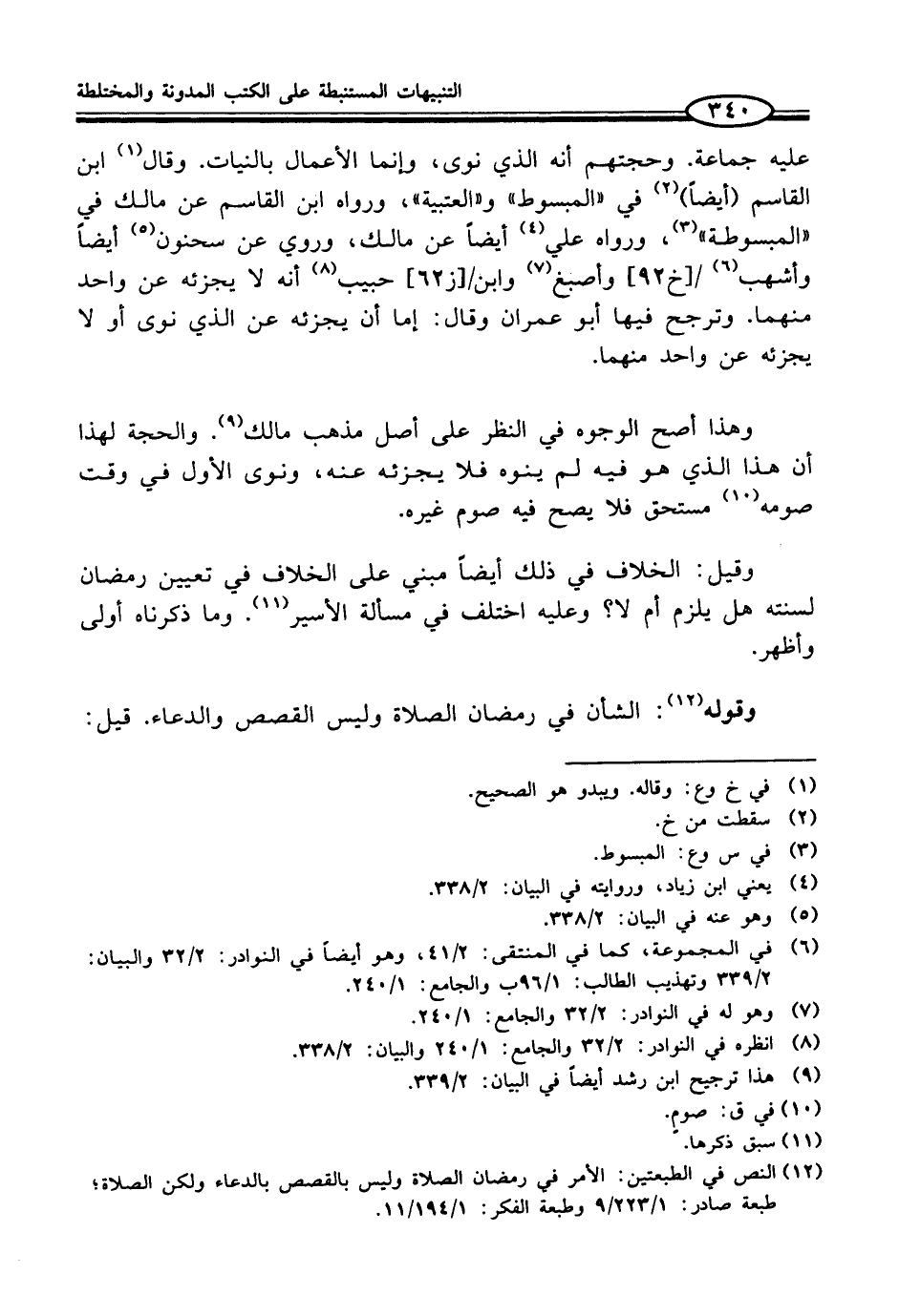(¬12) النص في الطبعتين: الأمر في رمضان الصلاة وليس بالقصص بالدعاء ولكن الصلاة؛ طبعة صادر: 1/ 223/ 9 وطبعة الفكر: 1/ 194/ 11.