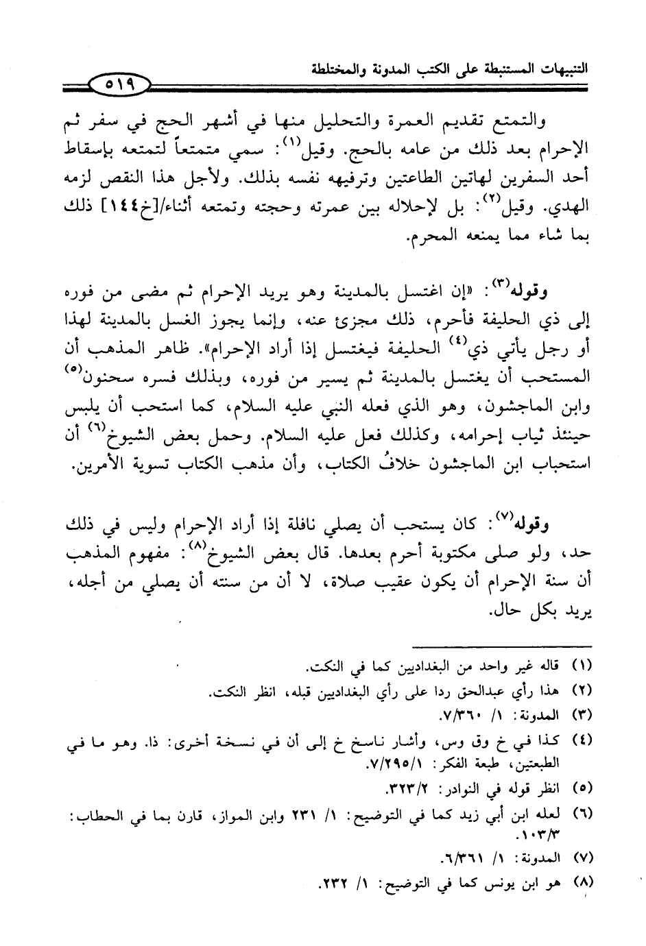 (¬6) لعله ابن أبي زيد كما في التوضيح: 1/ 231 وابن المواز، قارن بما في الحطاب: 3/ 103.