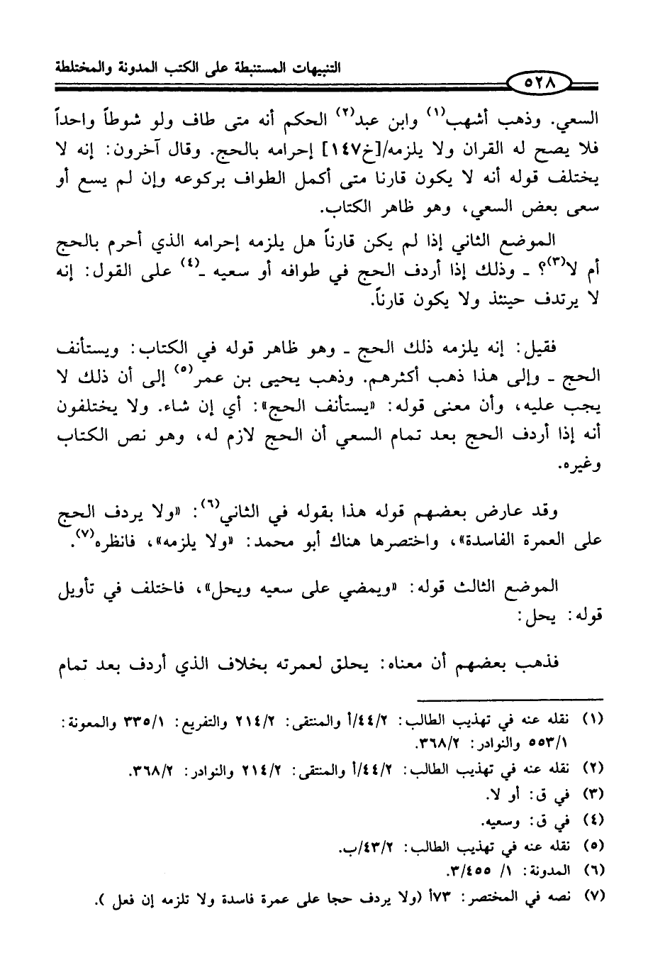 (¬1) نقله عنه في تهذيب الطالب: 2/ 44/ أوالمنتقى: 2/ 214 والتفريع: 1/ 335 والمعونة: 1/ 553 والنوادر: 2/ 368.