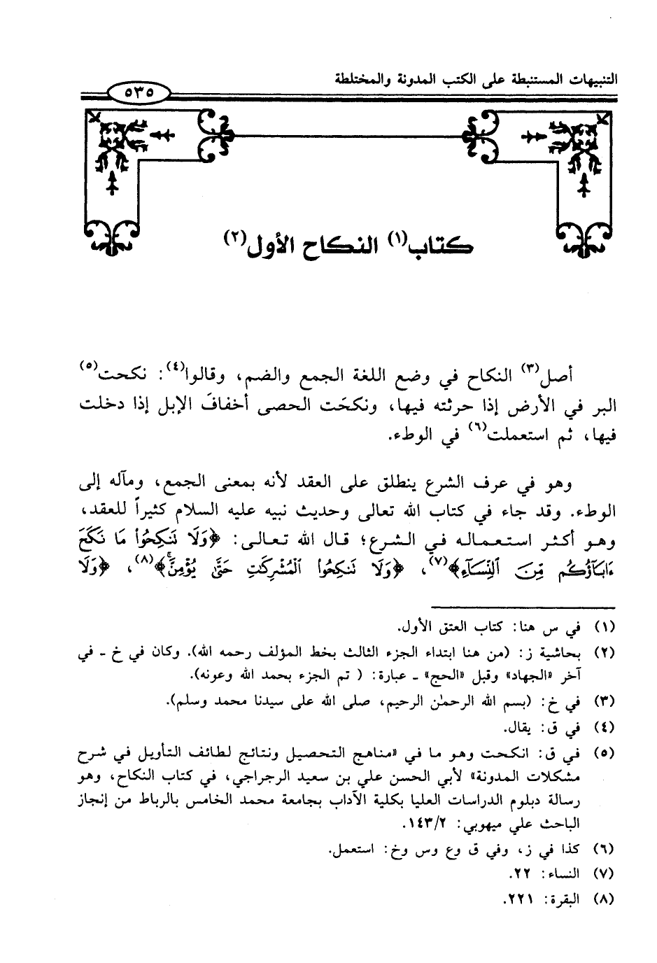 (¬5) في ق: انكحت وهو ما في "مناهج التحصيل ونتائج لطائف التأويل في شرح مشكلات المدونة" لأبي الحسن علي بن سعيد الرجراجي، في كتاب النكاح، وهو رسالة دبلوم الدراسات العليا بكلية الآداب بجامعة محمد الخاص بالرباط من إنجاز الباحث علي ميهوبي: 2/ 143.