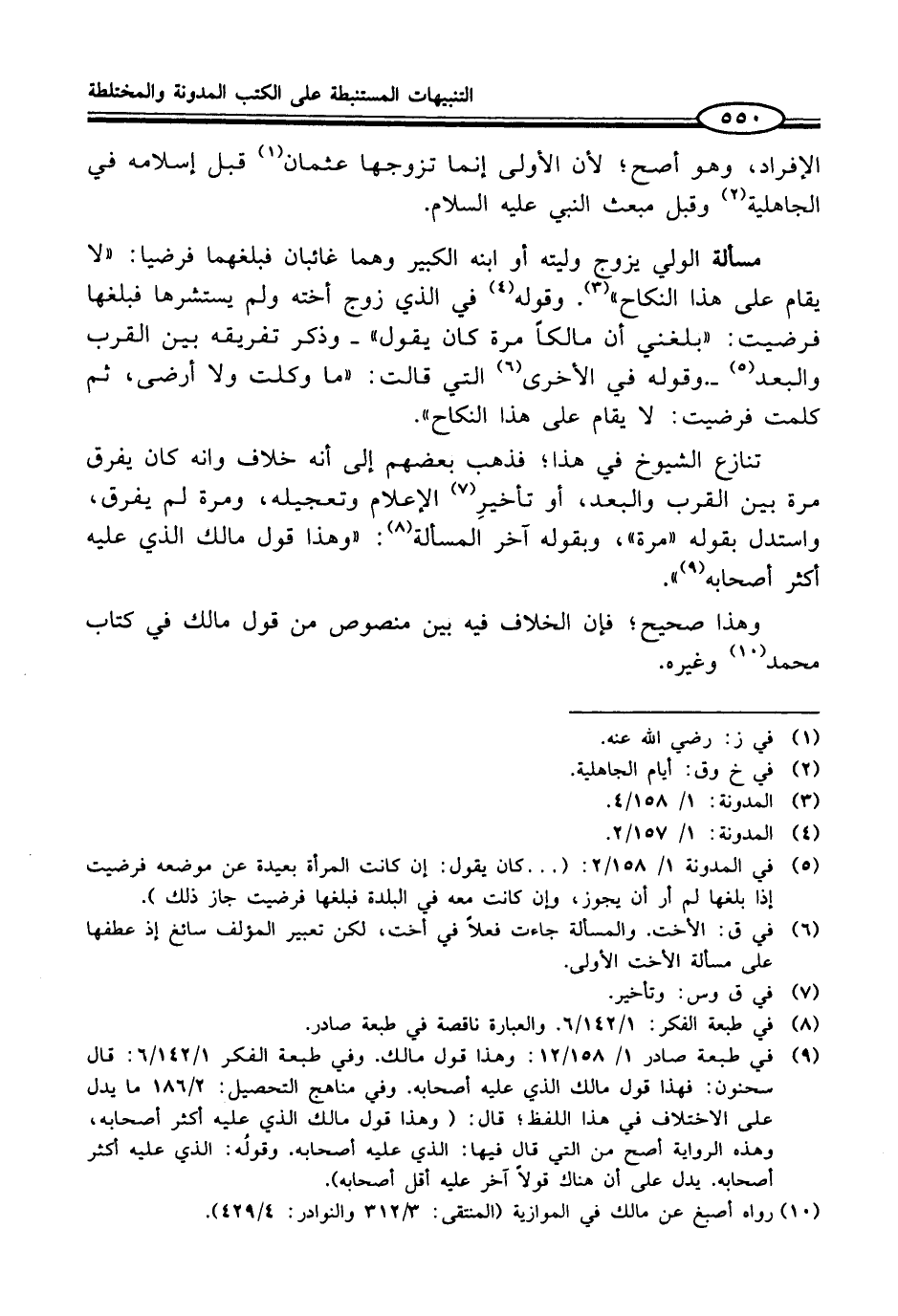 (¬9) في طبعة صادر 1/ 158/ 12: وهذا قول مالك. وفي طبعة الفكر 1/ 142/ 6: قال سحنون: فهذا قول مالك الذي عليه أصحابه. وفي مناهج التحصيل: 2/ 186 ما يدل على الاختلاف في هذا اللفظ؛ قال: (وهذا قول مالك الذي عليه أكثر أصحابه، وهذه الرواية أصح من التي قال فيها: الذي عليه أصحابه. وقولُه: الذي عليه أكثر أصحابه. يدل على أن هناك قولاً آخر عليه أقل أصحابه).