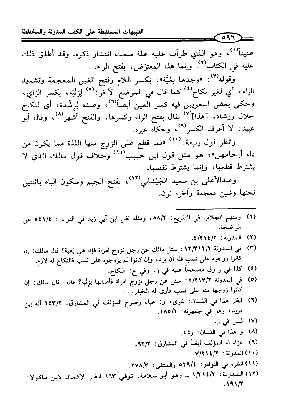 (¬12) المدونة: 2/ 214/ 1. وهو أبو سلامة، توفي 163 انظر الإكمال لابن ماكولا: 2/ 191.