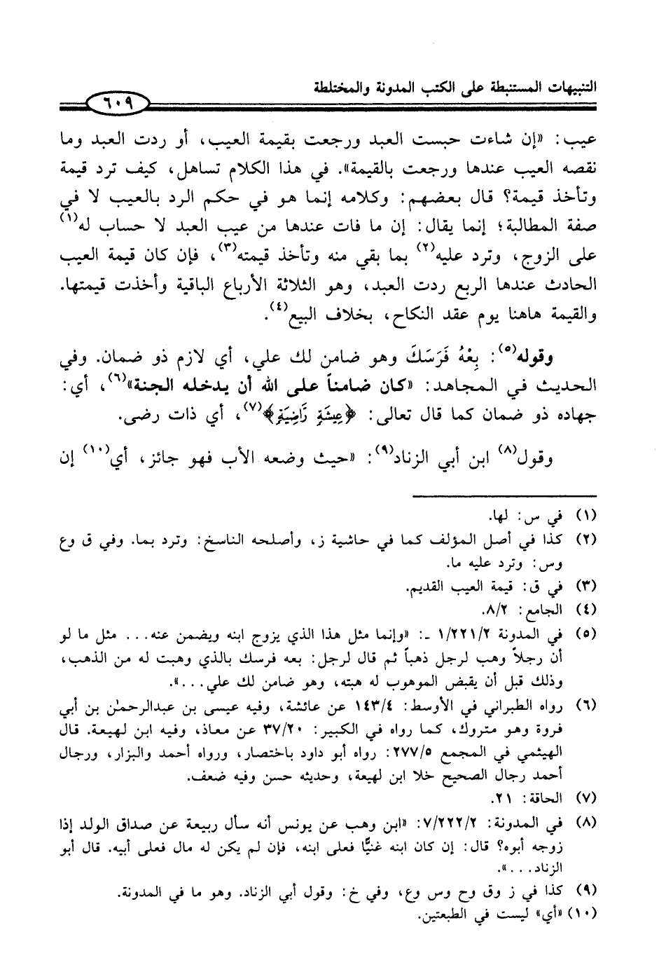 (¬9) كذا في ز وق وح وس وع، وفي خ: وقول أبي الزناد. وهو ما في المدونة.