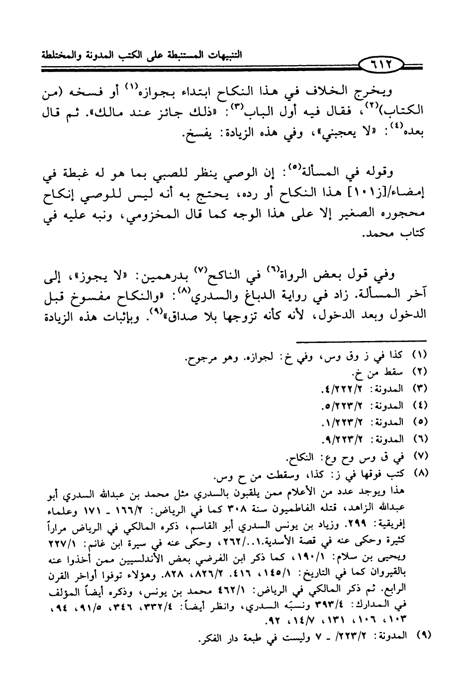 (¬9) المدونة: 2/ 223/- 7 وليست في طبعة دار الفكر.