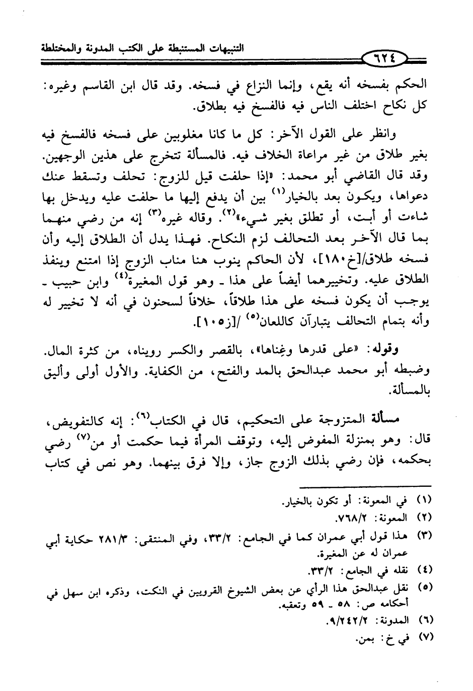 (¬5) نقل عبد الحق هذا الرأي عن بعض الشيوخ القرويين في النكت، وذكره ابن سهل في أحكامه ص: 58 - 59 وتعقبه.