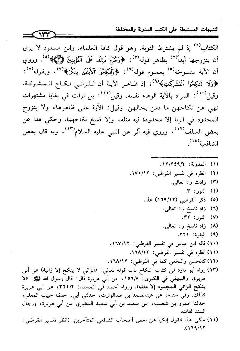 (¬14) حكى هذا القول إلكيا عن بعض أصحاب الشافعي المتأخرين. (انظر تفسير القرطبي: 12/ 169).