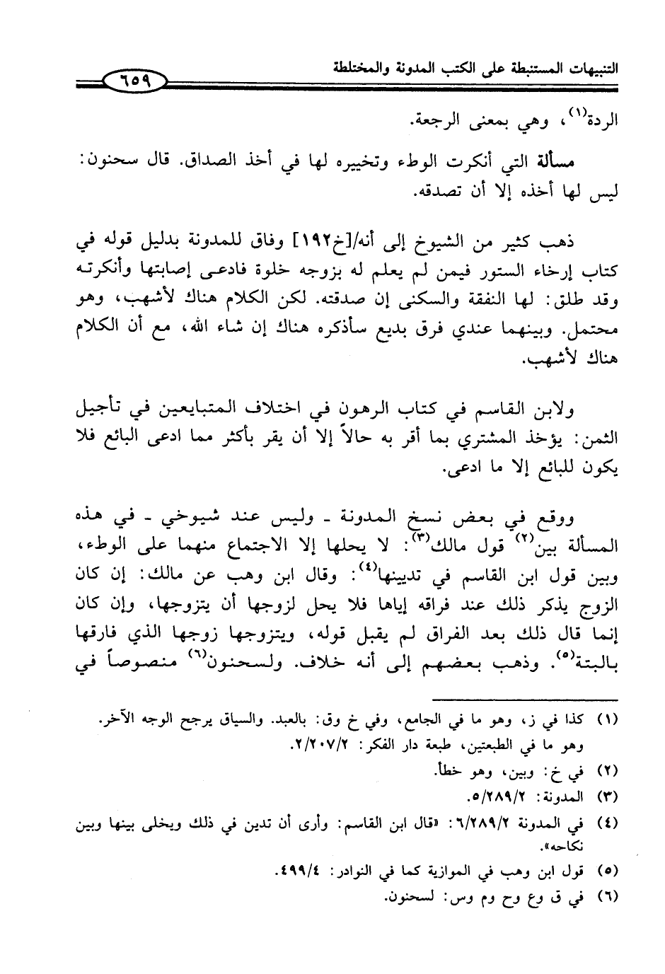 (¬5) قول ابن وهب في الموازية كما في النوادر: 4/ 499.