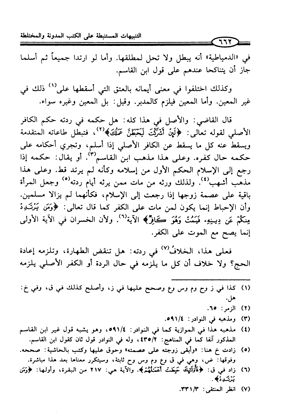 (¬6) زاد في ق: {فَأُولَئِكَ حَبِطَتْ أَعْمَالُهُمْ}. والآية هي: 217 من البقرة، وأولها: {وَمَنْ يَرْتَدِدْ}.