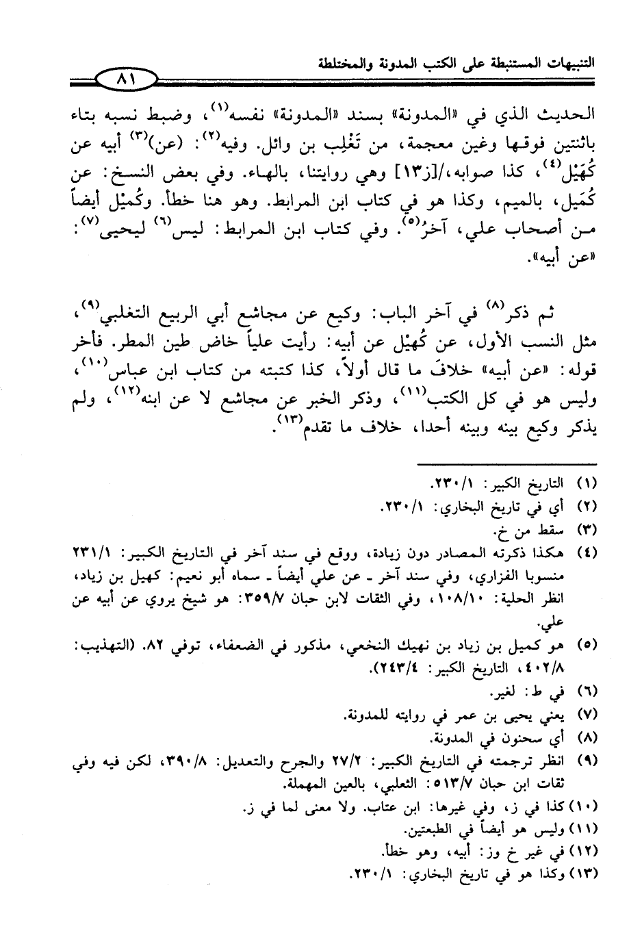 (¬13) وكذا هو في تاريخ البخاري: 1/ 230.