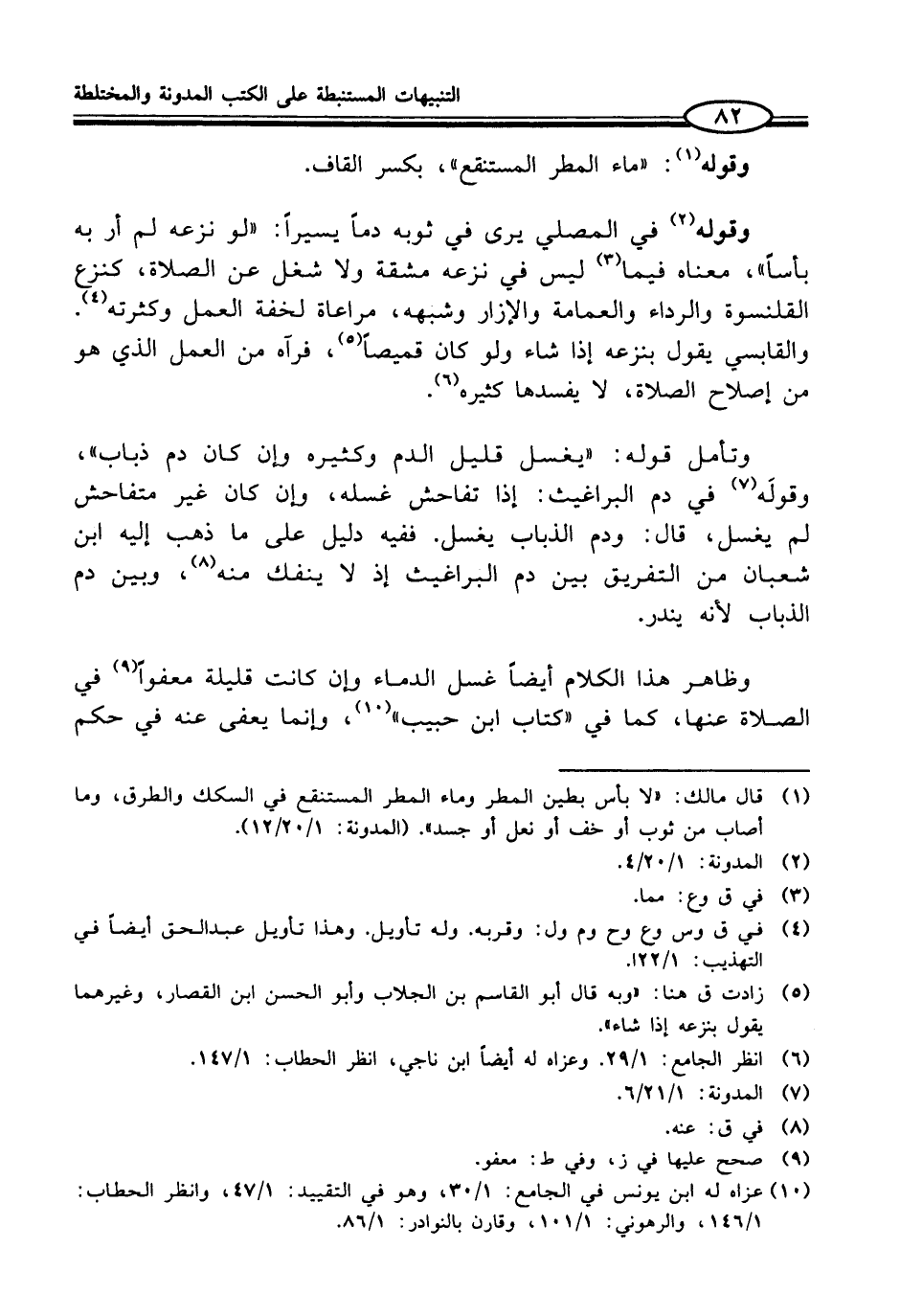 (¬10) عزاه له ابن يونس في الجامع: 1/ 30، وهو في التقييد: 1/ 47، وانظر الحطاب: 1/ 146، والرهوني: 1/ 101، وقارن بالنوادر: 1/ 86.