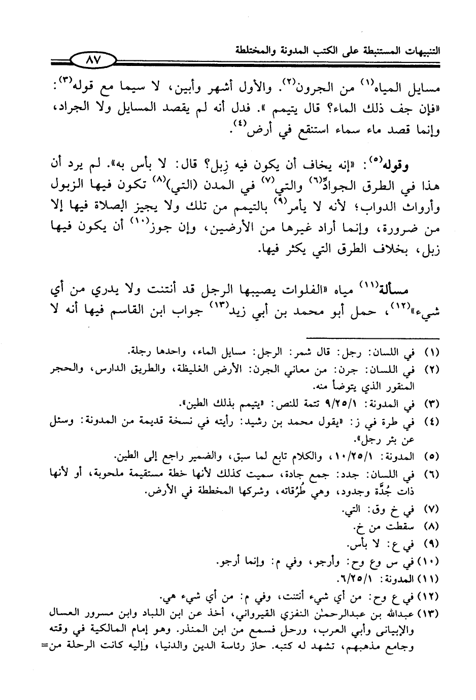 (¬5) المدونة: 1/ 25/ 10، والكلام تابع لما سبق، والضمير راجع إلى الطين.