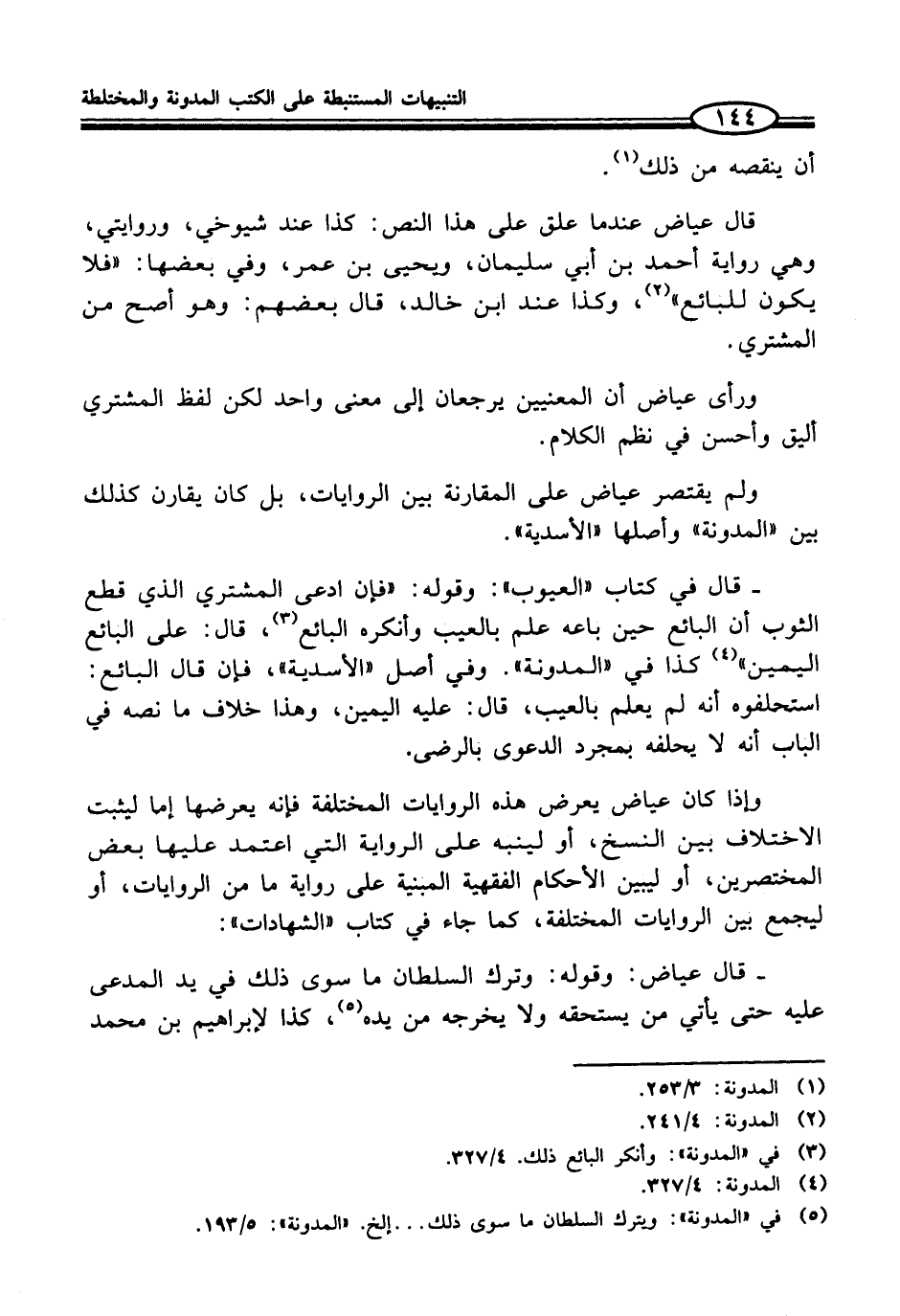 ولم يقتصر عياض على المقارنة بين الروايات، بل كان يقارن كذلك بين "المدونة" وأصلها "الأسدية".