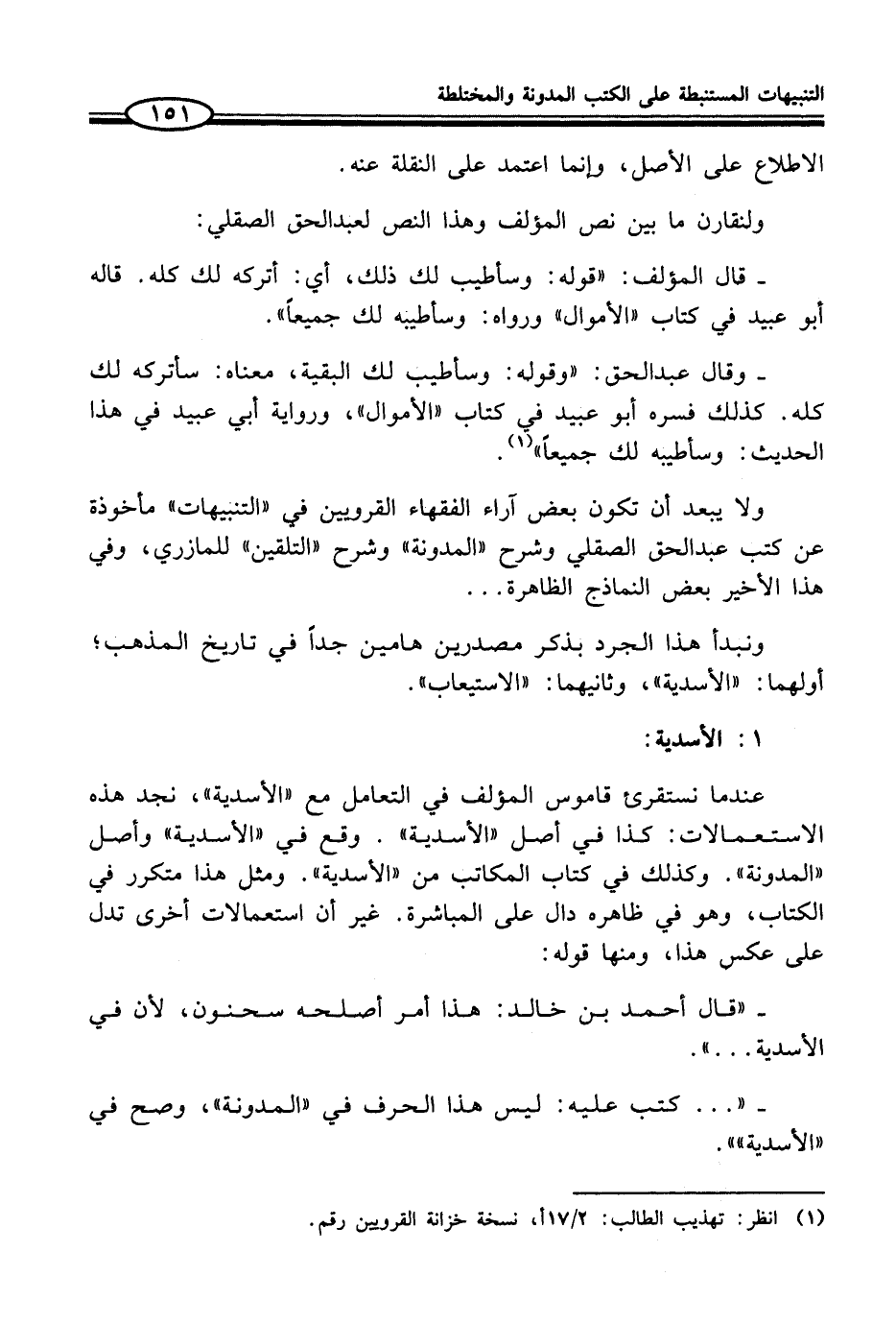 - "قال أحمد بن خالد: هذا أمر أصلحه سحنون، لأن في الأسدية ... ".