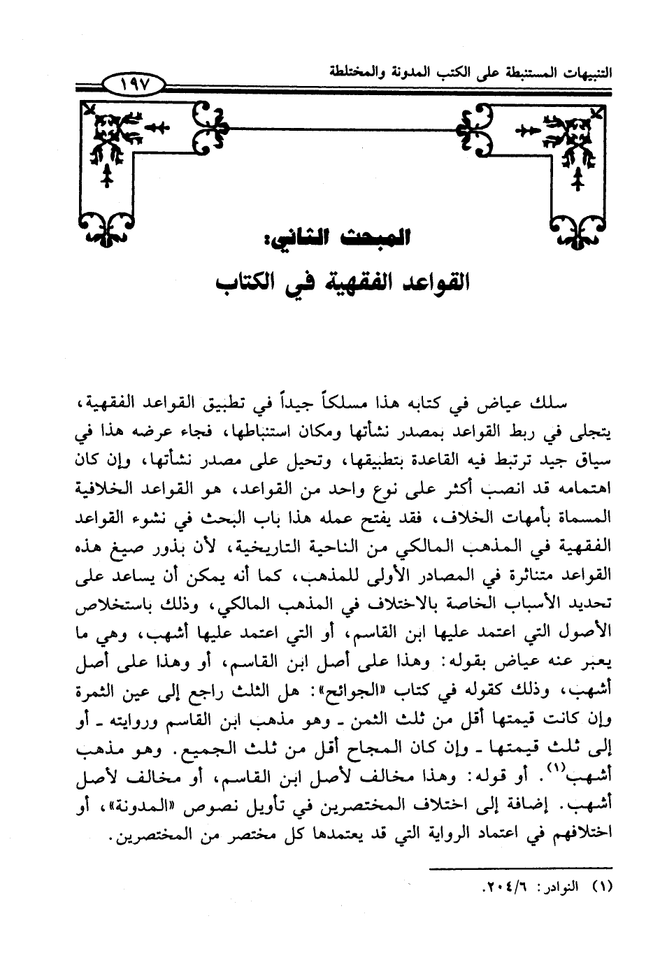 المبحث الثاني: القواعد الفقهية في الكتاب