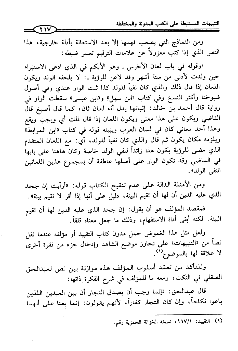 ولعل مثل هذا الغموض حمل مدون كتاب التقييد أو مؤلفه عندما نقل نصاً من "التنبيهات" على تجاوز موضع الشاهد وإدخال جزء من فقرة أخرى لا علاقة لها بالموضوع (¬1).