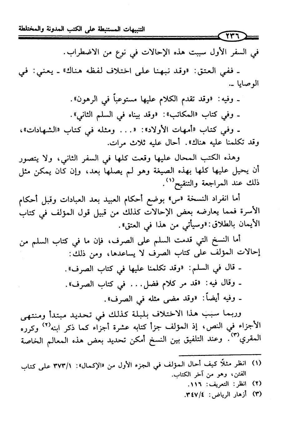 وهذه الكتب المحال عليها وقعت كلها في السفر الثاني، ولا يتصور أن يحيل عليها كلها بهذه الصيغة وهو لم يصلها بعد، وإن كان يمكن مثل ذلك عند المراجعة والتنقيح (¬1).