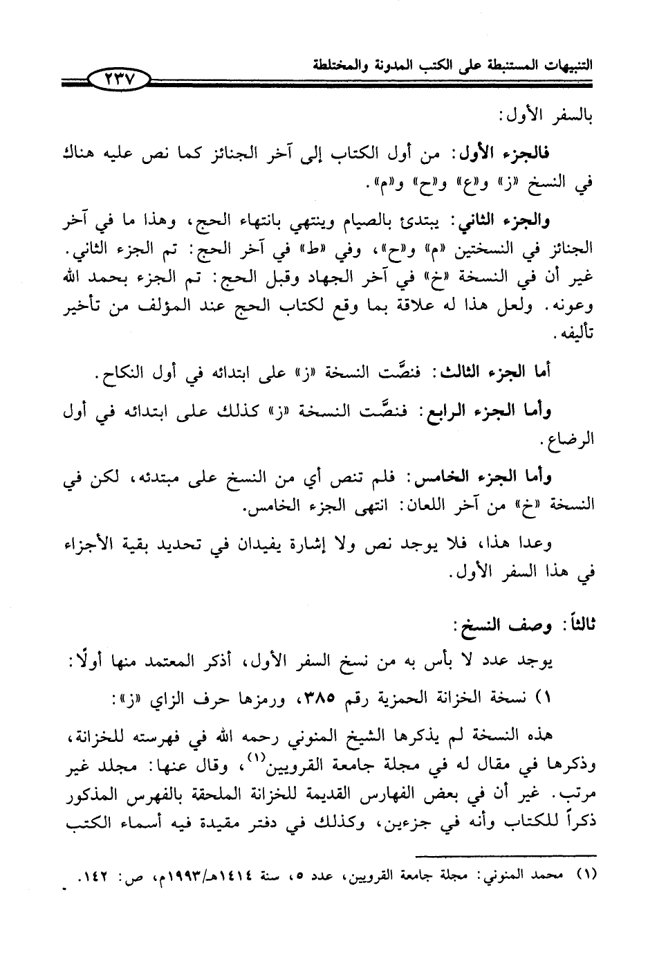(¬1) محمد المنوني: مجلة جامعة القرويين، عدد 5، سنة 1414 هـ / 1993 م، ص: 142.