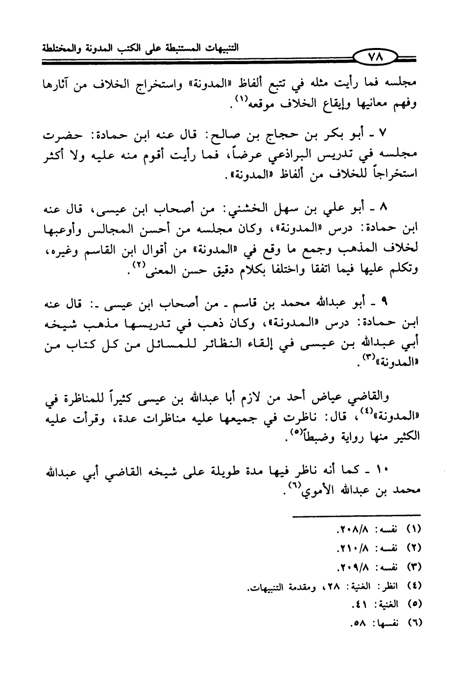 9 - أبو عبد الله محمَّد بن قاسم - من أصحاب ابن عيسى -: قال عنه ابن حمادة: درس "المدونة"، وكان ذهب في تدريسها مذهب شيخه أبي عبد الله بن عيسى في إلقاء النظائر للمسائل من كل كتاب من "المدونة" (¬3).