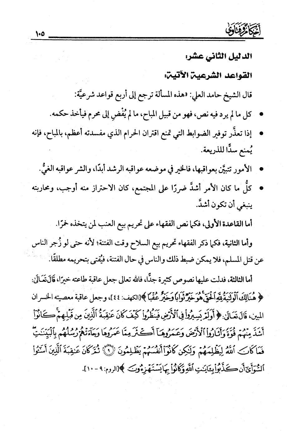 قال الشيخ حامد العلي: «هذه المسألة ترجع إلى أربع قواعد شرعيَّة: