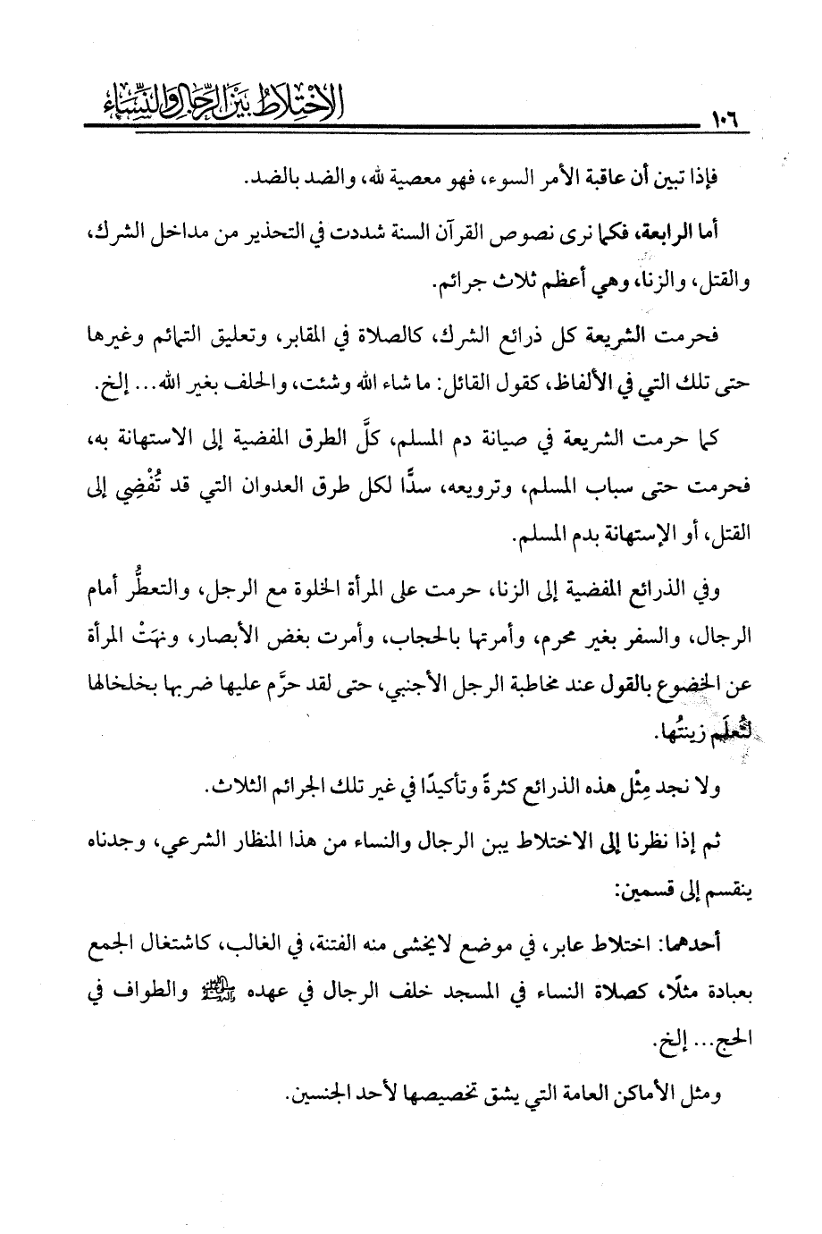 أما الرابعة فكما نرى نصوص القرآن السنة شددت في التحذير من مداخل الشرك، والقتل، والزنا، وهي أعظم ثلاث جرائم.