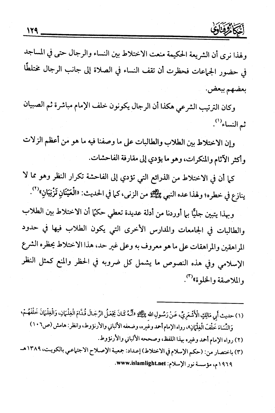 (¬3) باختصار من (حكم الإسلام في الاختلاط)، إعداد جمعية الإصلاح الاجتماعي بالكويت، 1389هـ 1969م، مؤسسة نور الإسلام: www.islamlight.net.