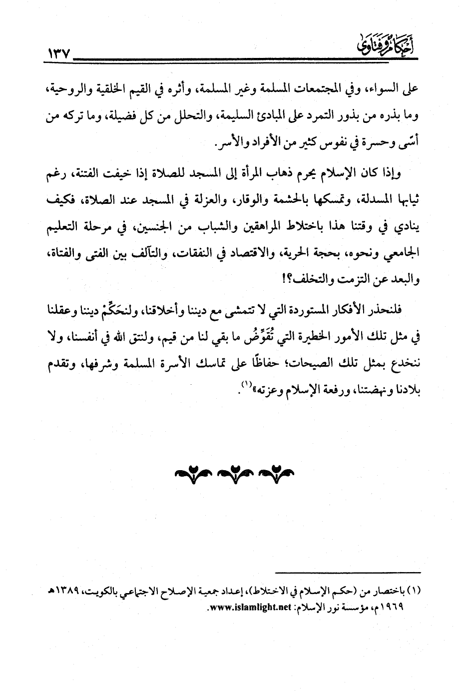 (¬1) باختصار من (حكم الإسلام في الاختلاط)، إعداد جمعية الإصلاح الاجتماعي بالكويت، 1389هـ 1969م، مؤسسة نور الإسلام: www.islamlight.net.
