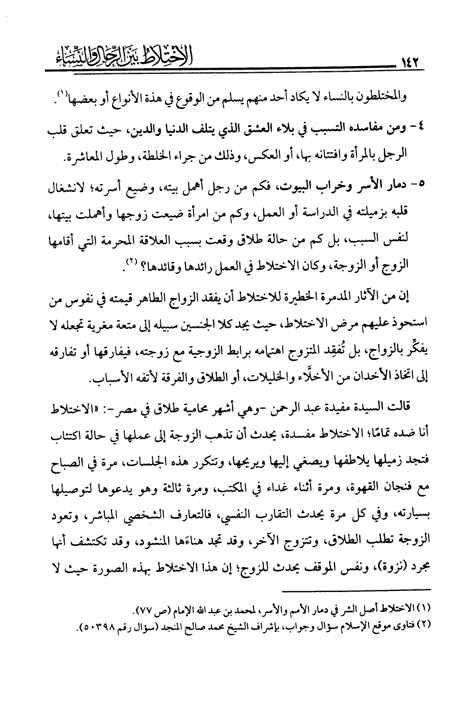 (¬1) الاختلاط أصل الشر في دمار الأمم والأسر لمحمد بن عبد الله الإمام (ص 77).