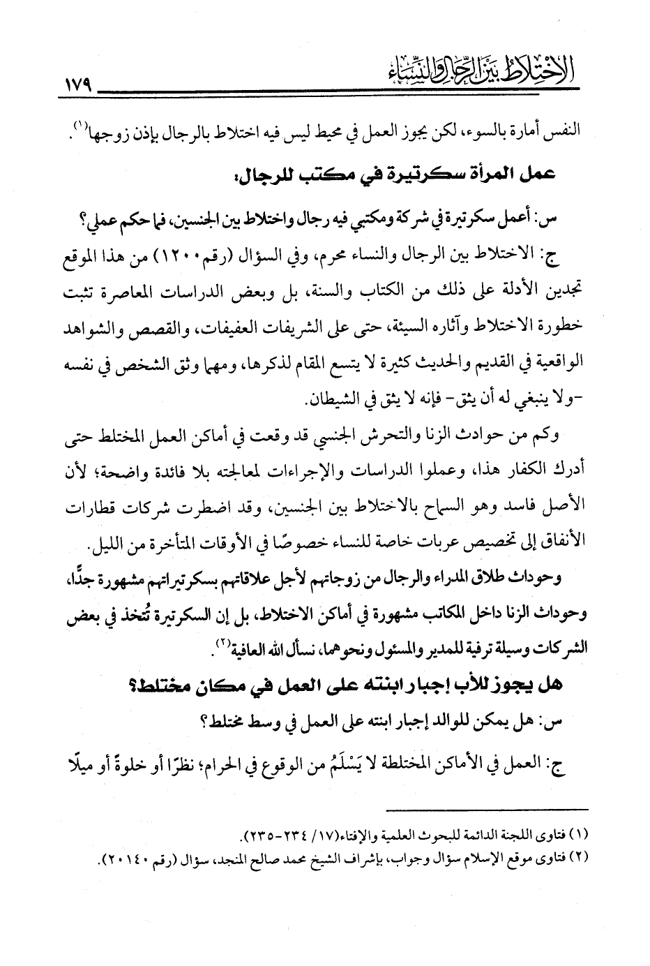 س: هل يمكن للوالد إجبار ابنته على العمل في وسط مختلط؟