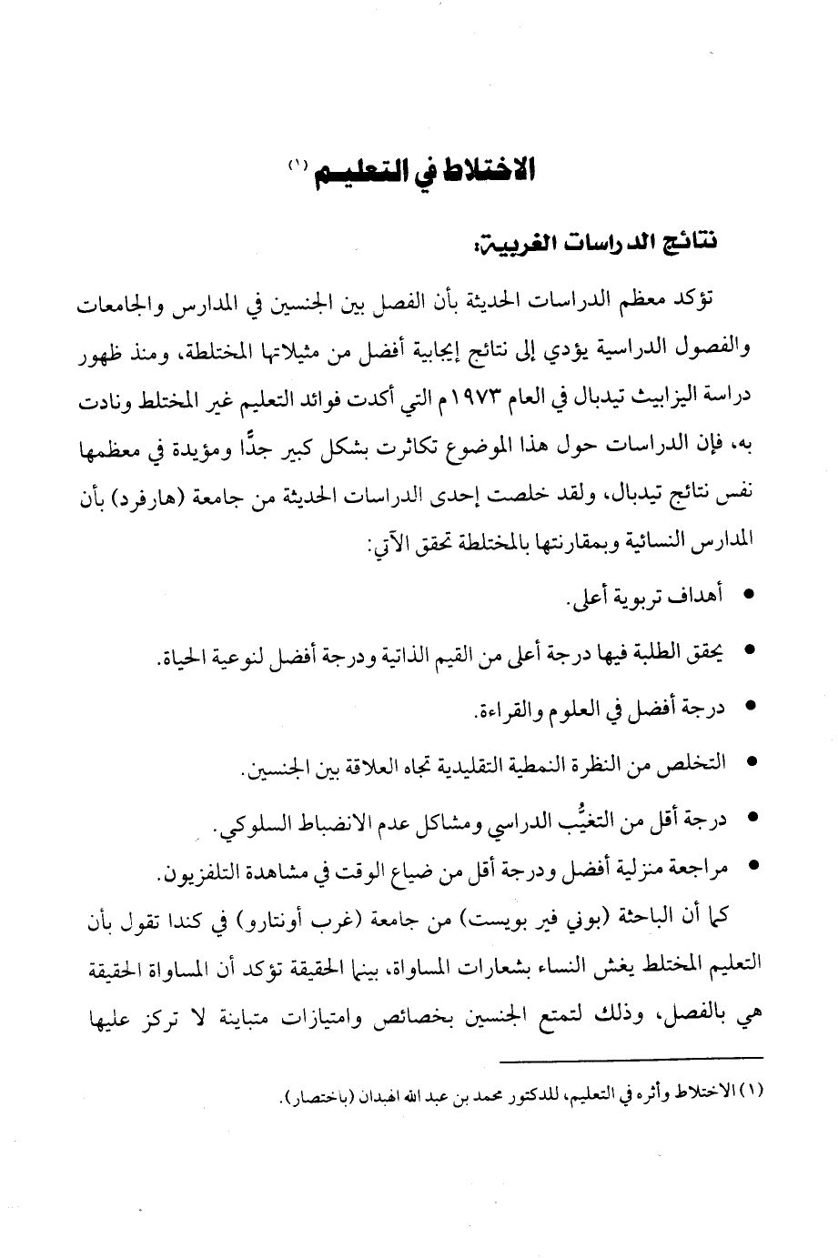 (¬1) الاختلاط وأثره في التعليم، للدكتور محمد بن عبد الله الهبدان (باختصار).