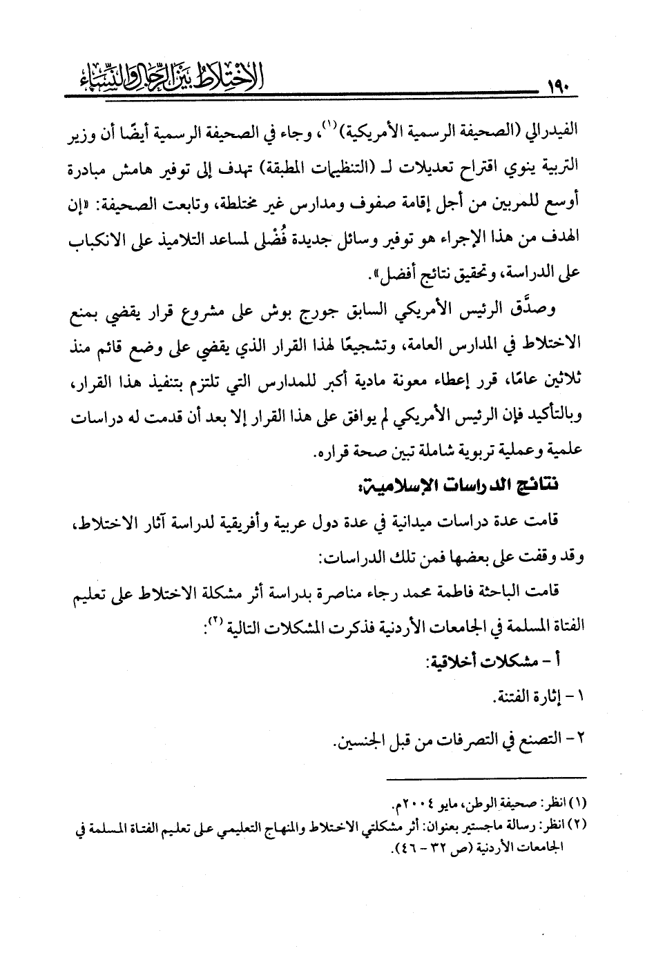 (¬2) انظر: رسالة ماجستير بعنوان: أثر مشكلتي الاختلاط والمنهاج التعليمي على تعليم الفتاة المسلمة في الجامعات الأردنية، (ص 32 - 46).